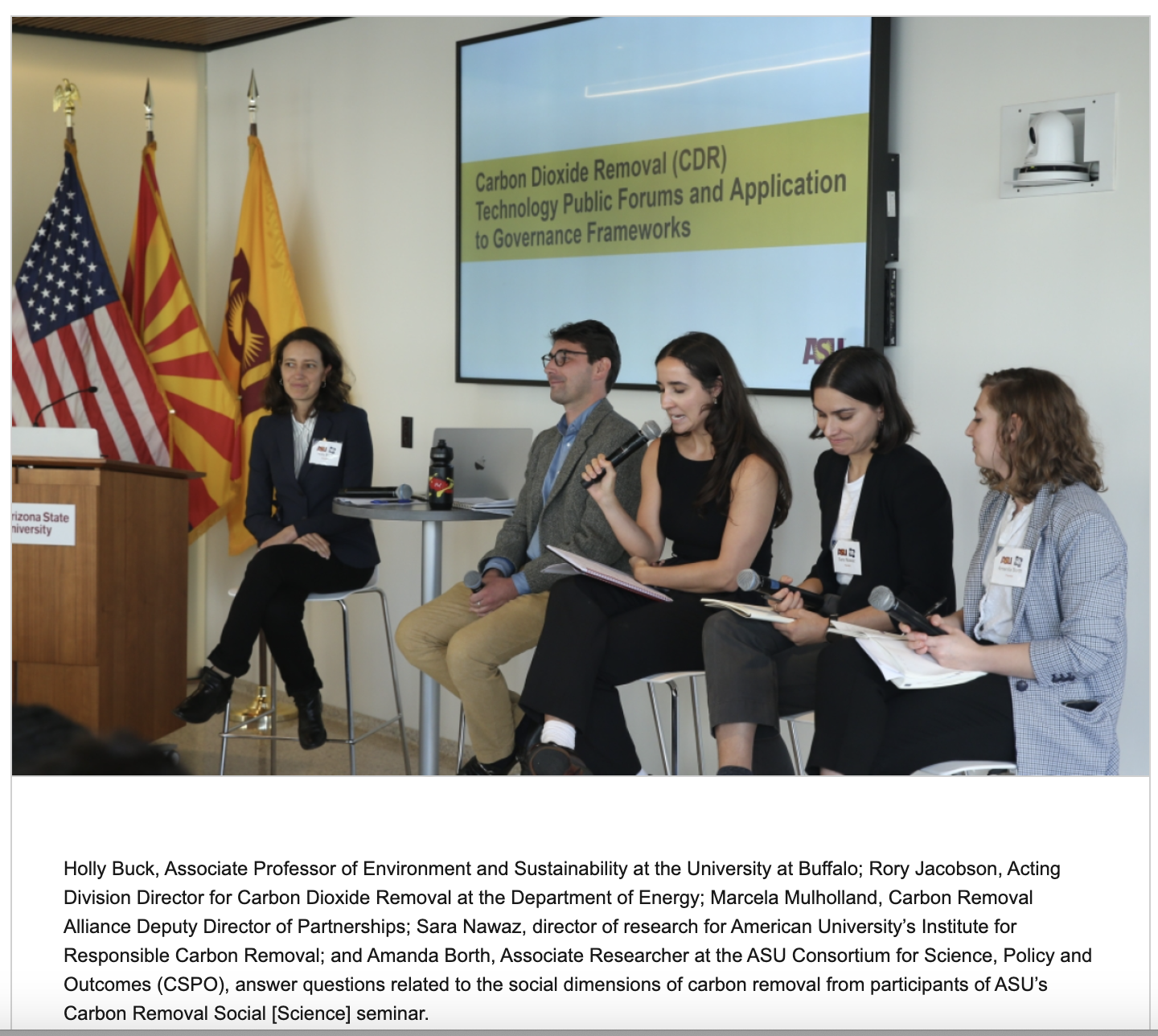 “I think for all of my time working in CDR, I felt like the social risks of deployment, the community dynamics, and host sites where we’re trying to employ these technologies has been an undervalued and underappreciated part of what’s going to what it’s going to take to scale this industry,” said Marcela Mulholland, deputy director of partnerships for the Carbon Removal Alliance, at an Arizona State University seminar discussing the social dimensions of CDR. “It feels like the world of social science research for CDR should be at least comparable to the kind of technical research that we see for these technologies. Too often, they’re siloed, and the people in the technical world don’t necessarily talk to or incorporate the findings from the social scientists into their work.”